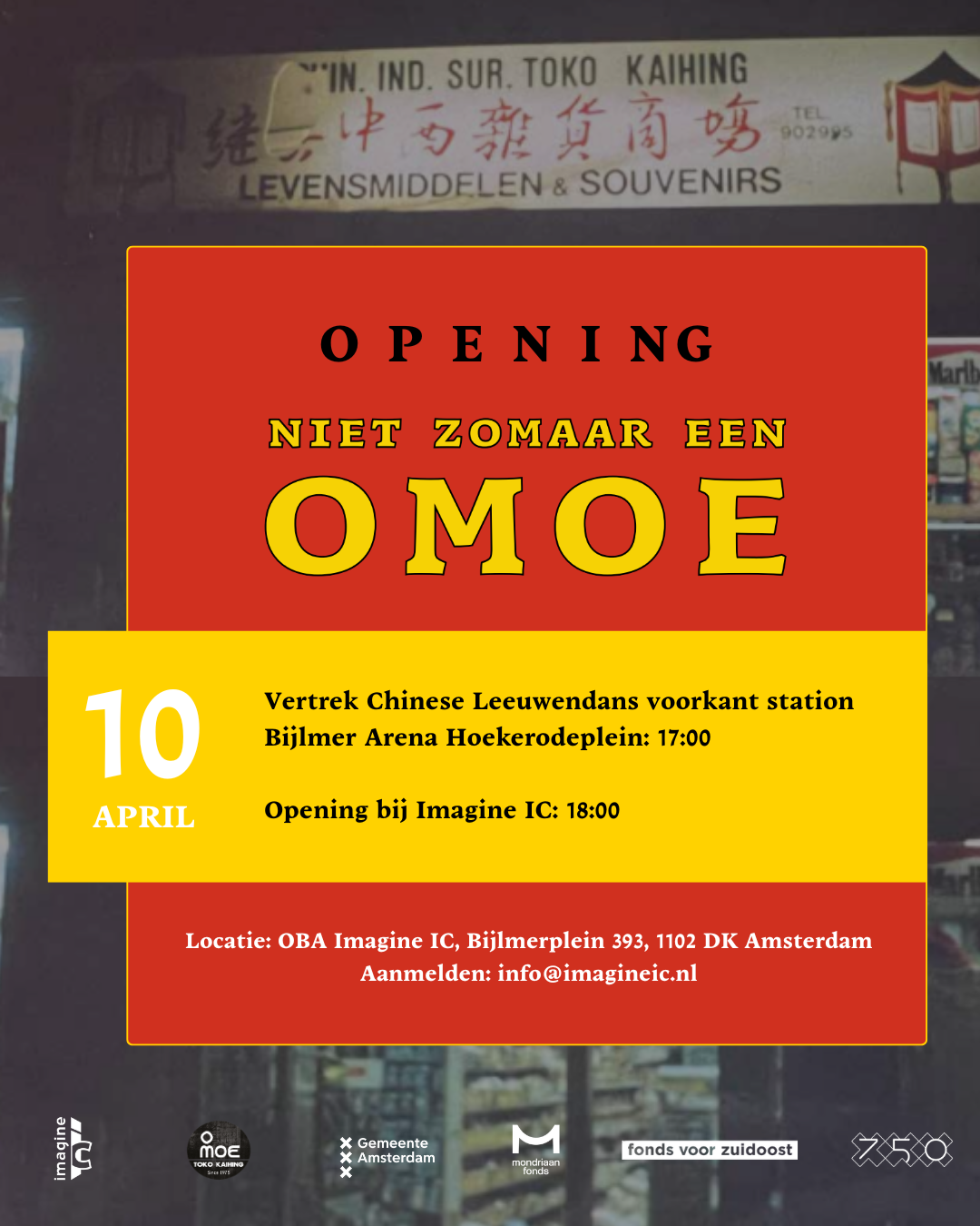 Een feestelijke drakendans, live kalligrafie door de iconische ‘Omoe’ en de onthulling van een gloednieuw standbeeldontwerp: op donderdag 10 april opent OBA Imagine IC de tentoonstelling ‘Niet zomaar een Omoe’. Al vijftig jaar is Toko Kai Hing een vaste waarde in de Amsterdamse Bijlmer. Met foto’s, verhalen en bijzondere voorwerpen vieren we deze Surinaams-Chinese buurtwinkel als huiskamer van de wijk én als bron van inspiratie voor generaties bewoners.