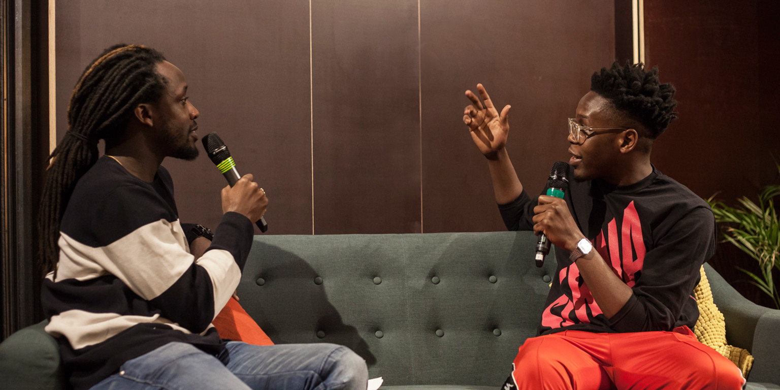 (foto: Akwasi en Amartey in gesprek tijdens Gespreksstof december 2017, Les Adu in opdracht van Imagine IC)