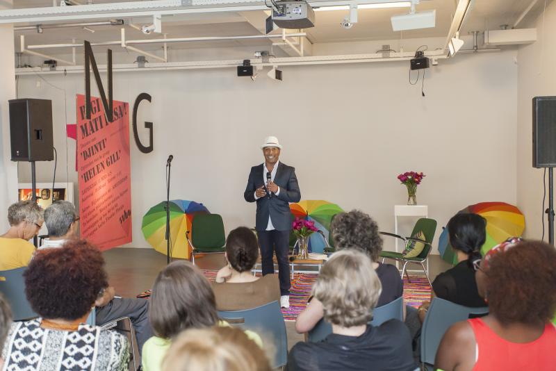 In het literaire programma werd voorgelezen door Andre Reeder, Marjolein Houweling en Collin Edson. Andre Reeder droeg stukken voor uit een lezing van James Baldwin voor leerlingen van een middelbare school in Oakland in 1963. Baldwin kaartte aan de hand van vragen van de leerlingen sociale onderwerpen aan die ook nu direct herkenbaar zijn. Kunstenares Marjolein Houweling las voor uit haar spannende roman 'Andermans Ogen' die is gesitueerd in de Bijlmermeer. Theatermaker Collin Edson presenteerde eerst een poëziefragment in het Papiaments, opgedragen aan een vriend die uit het leven stapte omdat zijn omgeving zijn geaardheid niet accepteerde. Daarna las hij twee columns voor van auteur Edgar Cairo uit de bloemlezing 'Ik ga dood om jullie hoofd'.